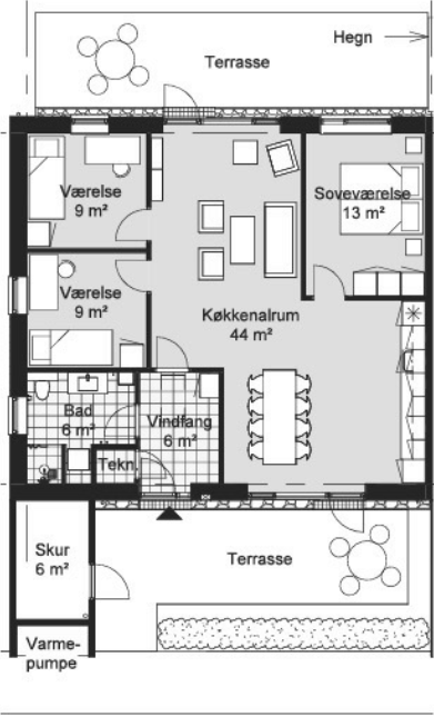 Boligerne varmes op med varmepumpe, og der er gulvvarme i alle rum. Det er tilladt at have én hund eller kat med i boligen.